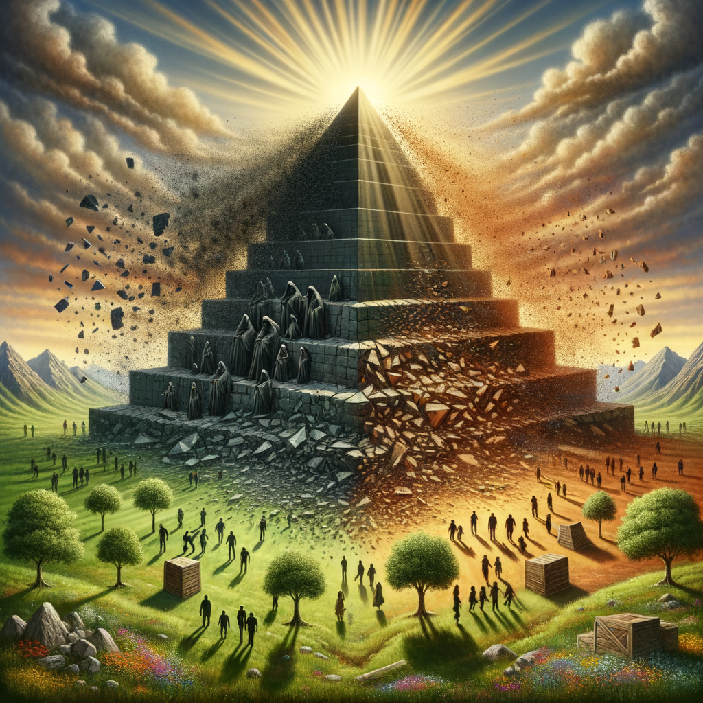 Pyramida davo-“elitární” společnosti se hroutí. Odspodu začíná proces budování a tvroby spravedlivé společnosti budoucnosti. Lidé společně na základě upřímného tvořivého dialogu analyzují podmínky rozvoje a aktivně se podílejí na jejich uvádění do života.