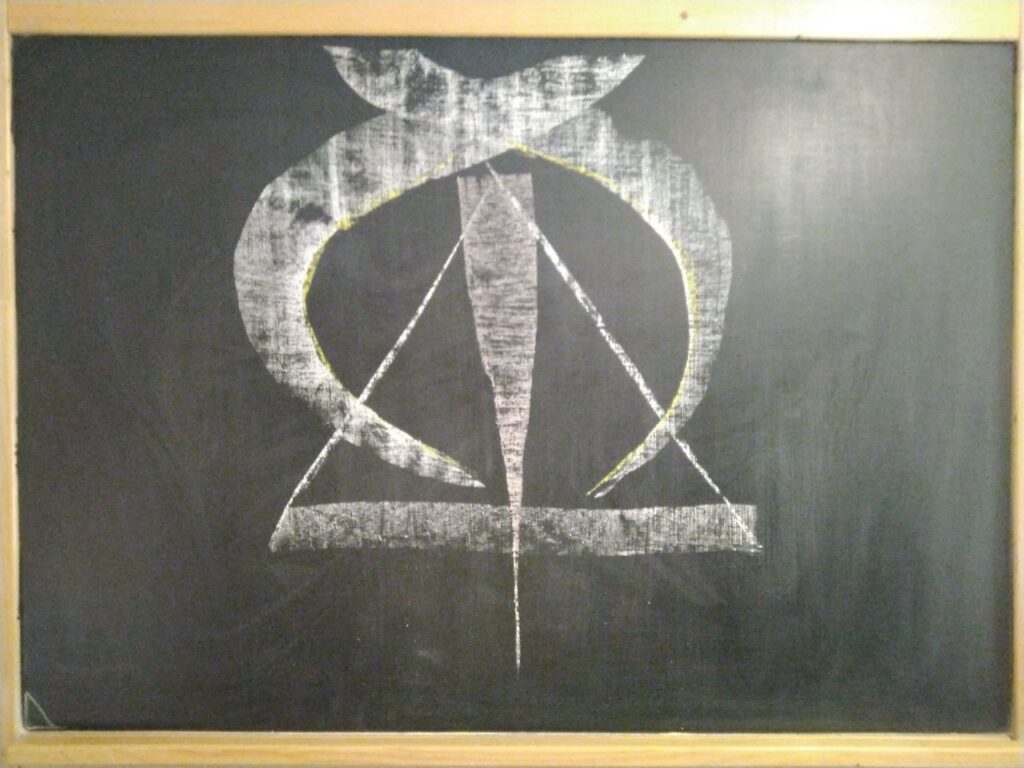 Symbolicky vyjádřený rozpad davo-“elitární” pyramidy. Obě křídla globálního prediktoru ztrácejí svůj vliv a propadají se ze špičky pyramidy moci dolů do hlubiny zapomnění. Zmanipulovaný dav se naopak probouzí a vstupuje nekompromisně do řízení všech procesů, které na něj mají vliv. Přičemž nejde zde o revoluční proces směny řídícího korpusu pyramidy, nýbrž o budování kvalitativně jiného systému spravedlivé společnosti. Kde jsou si všichni navzájem nepodmíněnými strůjci rozvoje i s ohledem na objemnější procesy – příroda – Bůh.